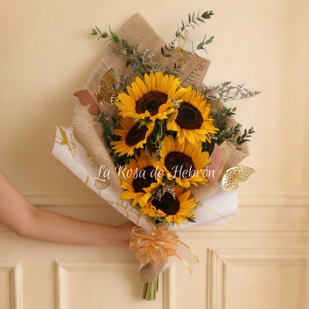 Los girasoles simbolizan felicidad, prosperidad, admiración y buena energía, por lo que este bouquet es perfecto para: