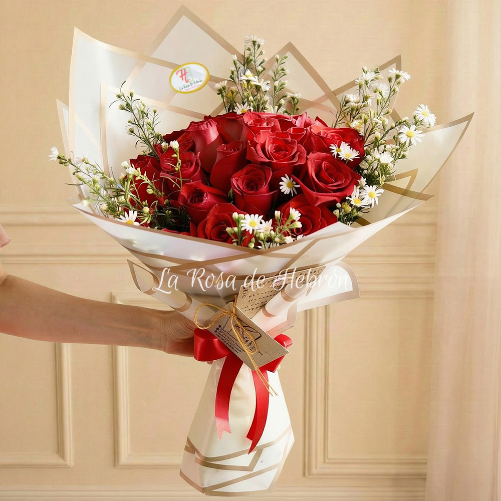 Las rosas rojas simbolizan amor eterno, pasión y compromiso, por lo que este bouquet es perfecto para: